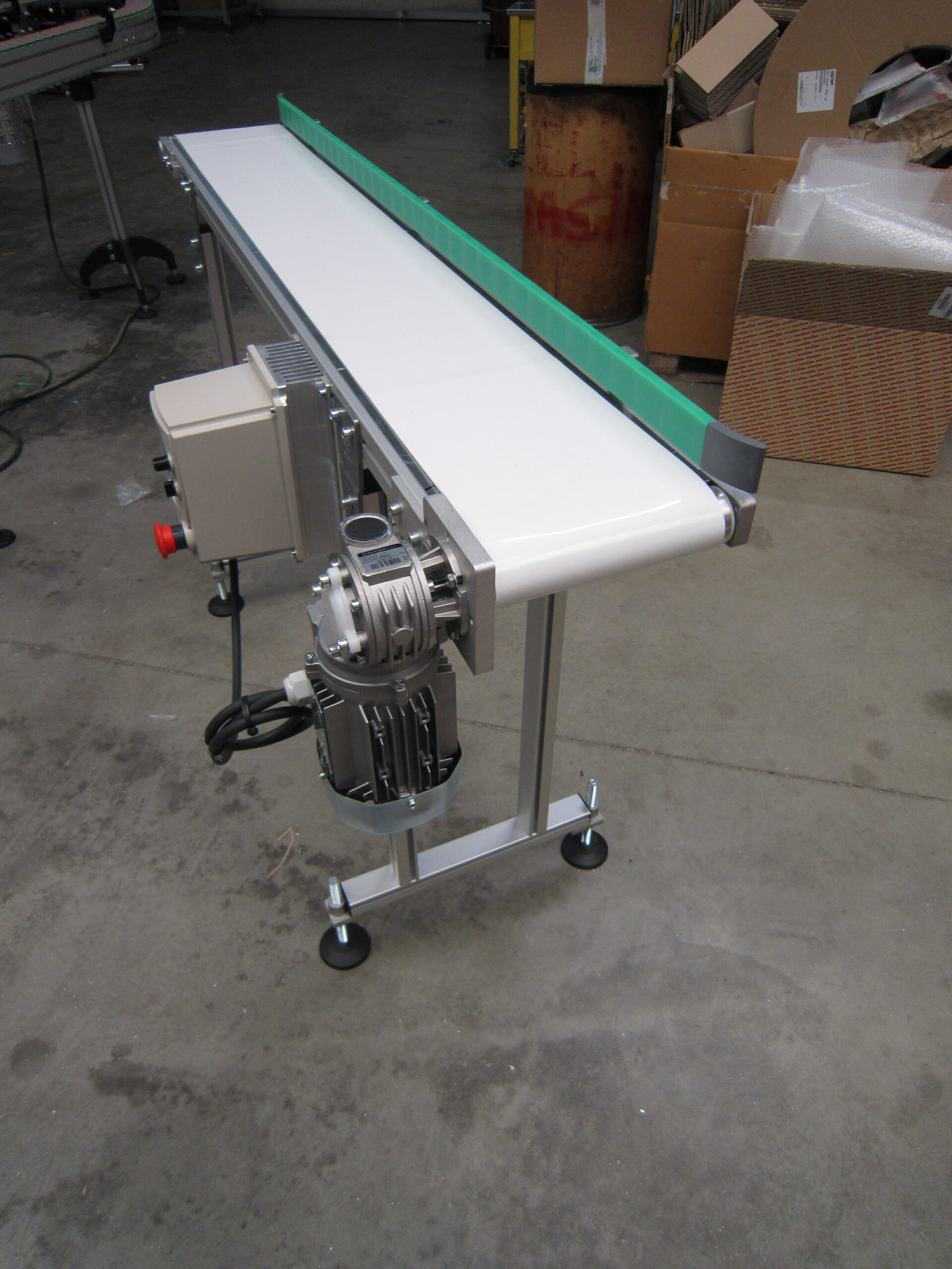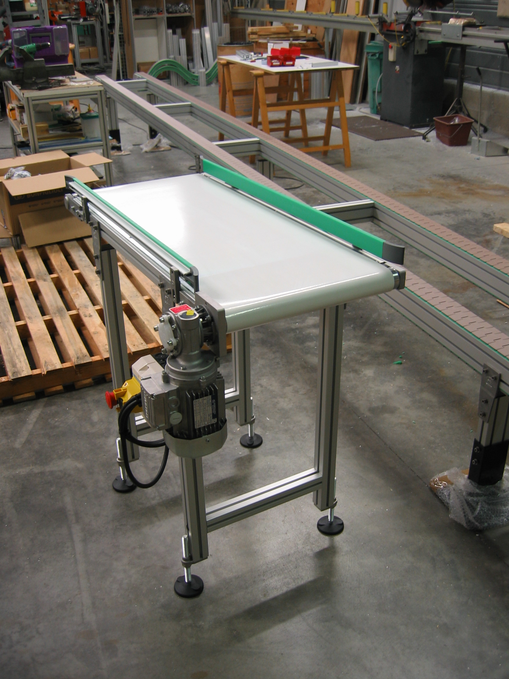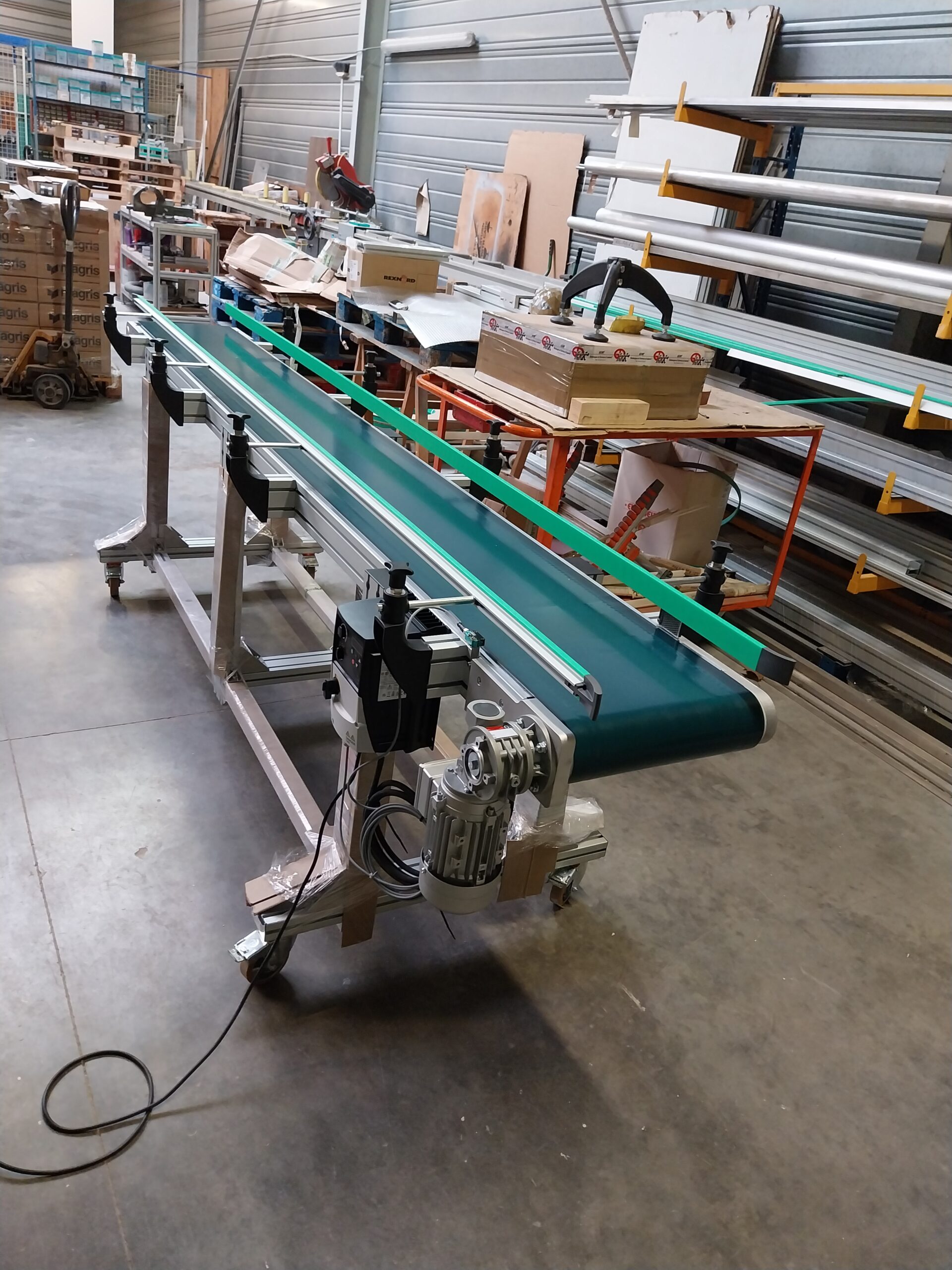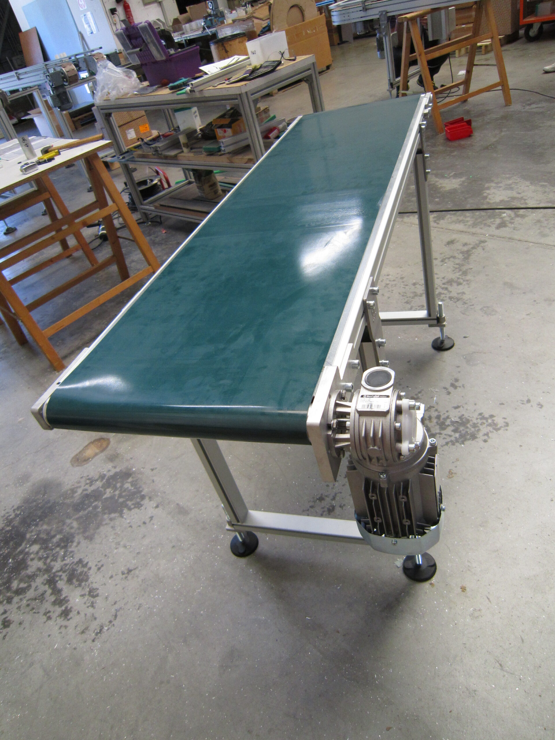 La bande transporteuse est tendue sur un châssis en aluminium anodisé robuste et entraînée par un moteur électrique. Selon votre application, la bande peut être :