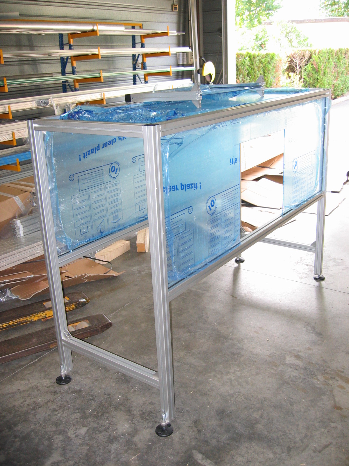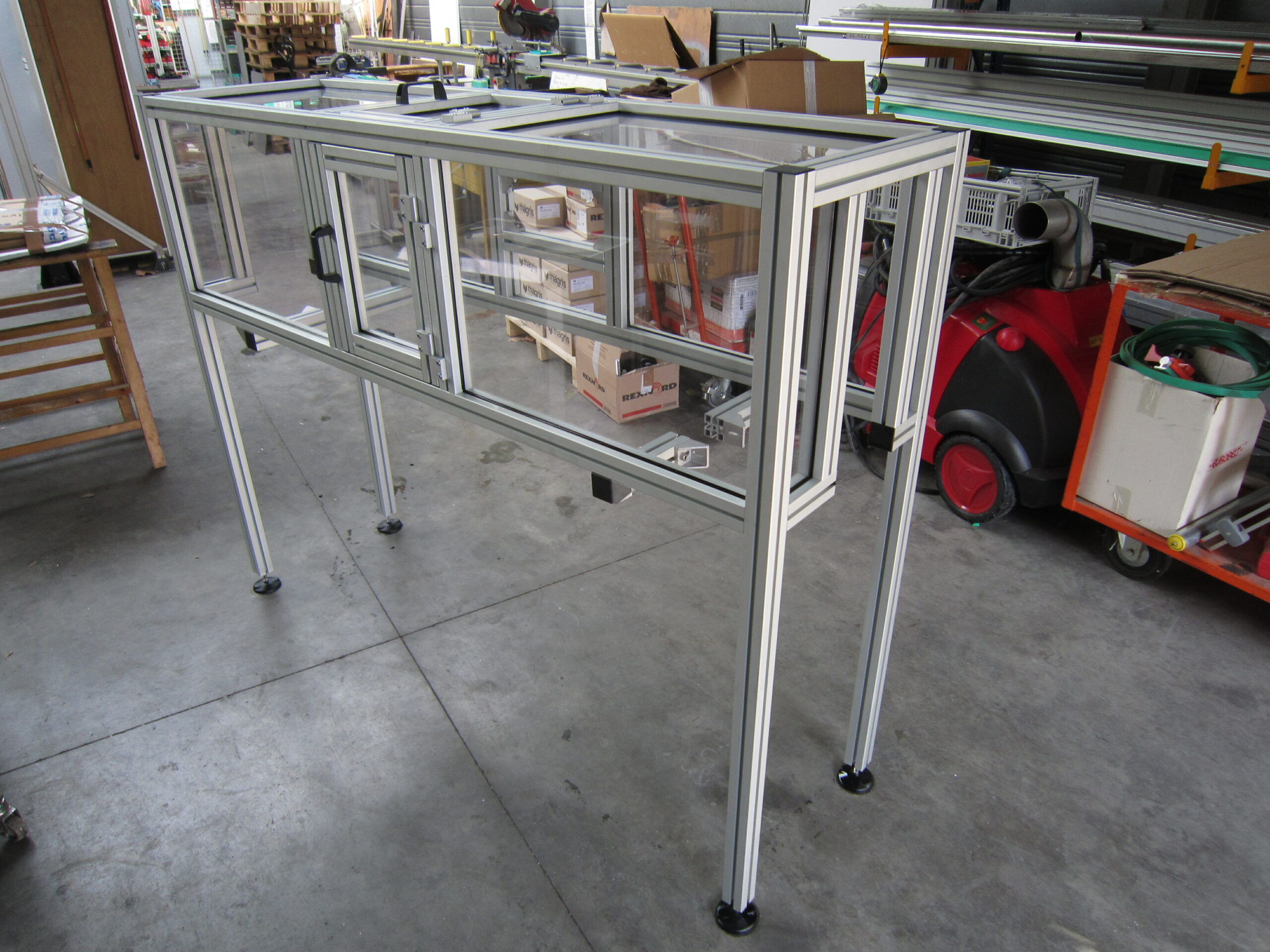 La cartérisation consiste à créer des structures de protection autour de machines, de postes de travail ou de lignes de production, à partir de profilés aluminium assemblés.